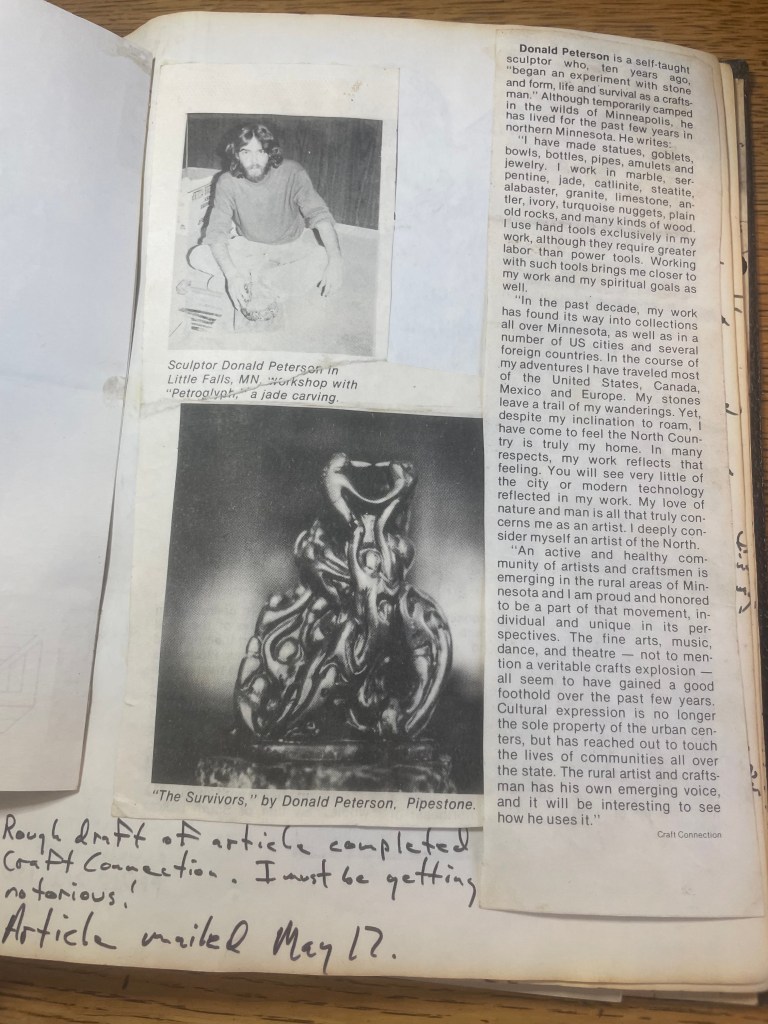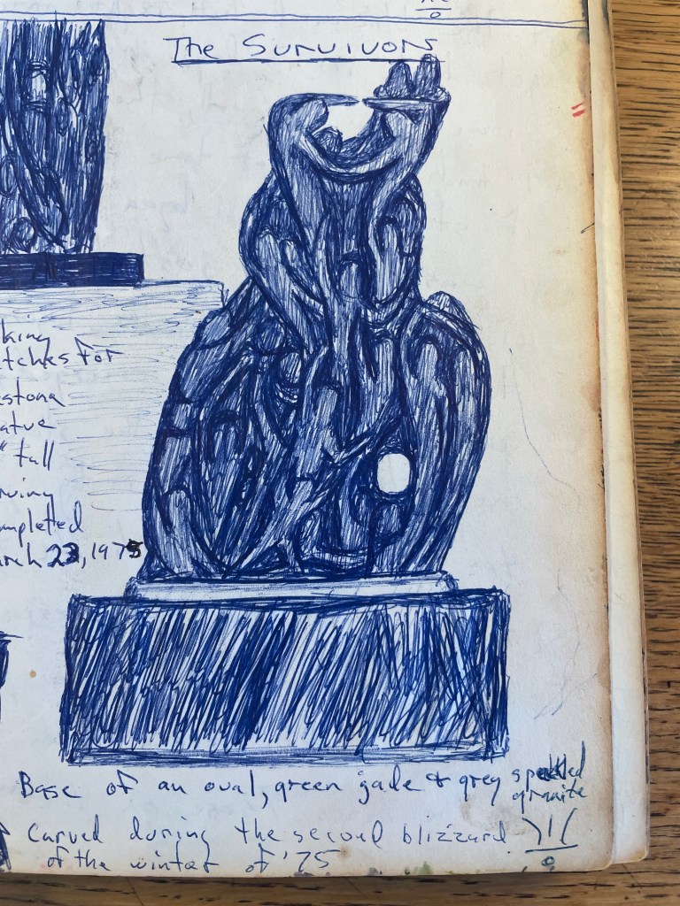 “I desperately, one could almost say crazily, long for acceptance and recognition in my society. It is a deep emotion in me that goes back right to my earliest memories. My work as a sculptor is my vehicle of this emotion, or motivation. The carvings I do are my means to this end. The actual feeling I have is that I am cut off from society in some way I am too crazy to understand. I am unacceptable in the balance of society. Sculpture is the way I can redeem my lost self and love and kinship with the human culture. My works of art are out cries that “I am here. I exist.” That is why I carve stones. In those stones are reflections of myself. People see me. I am not invisible. I am beauty– not loneliness.”
